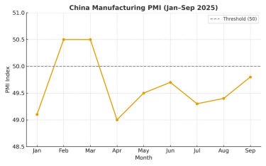 Within the broader industrial mix, the construction and automobile sectors have charted divergent courses. While one showed a weakening trend, the other stood firm. China’s construction PMI averaged 55.6 points from 2021 until September 2025. It reached an all-time high of 69.10 points in November of 2021 and a record low of 49.10 points in August 2025. In September, the PMI increased marginally to 49.30 points. However, until July 2025, the country’s construction PMI hovered above the threshold of 50 points, standing at 52.70 in February, 53.40 in March, 51.90 in April, 51 in May, 52.80 in June, and 50.60 in July. These data show that even though the monthly PMI stood above the benchmark yet recorded overall drop.