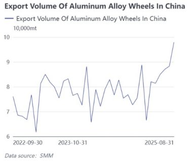 According to SMM, China's aluminum alloy wheel hub exports in August increased significantly by 9,600 tonnes to 97,900 tonnes, up by 10.9 per cent M-o-M and 18.4 per cent Y-o-Y, hitting a three-year high. The finished product inventory index was 43.1 per cent, a noticeable decrease from 53.0 per cent in August, while the purchasing volume index was 59.8 per cent, indicating inventories are in a more reasonable range and procurement activities are relatively active, suggesting enterprises maintain a steady pace in inventory management and raw material procurement.